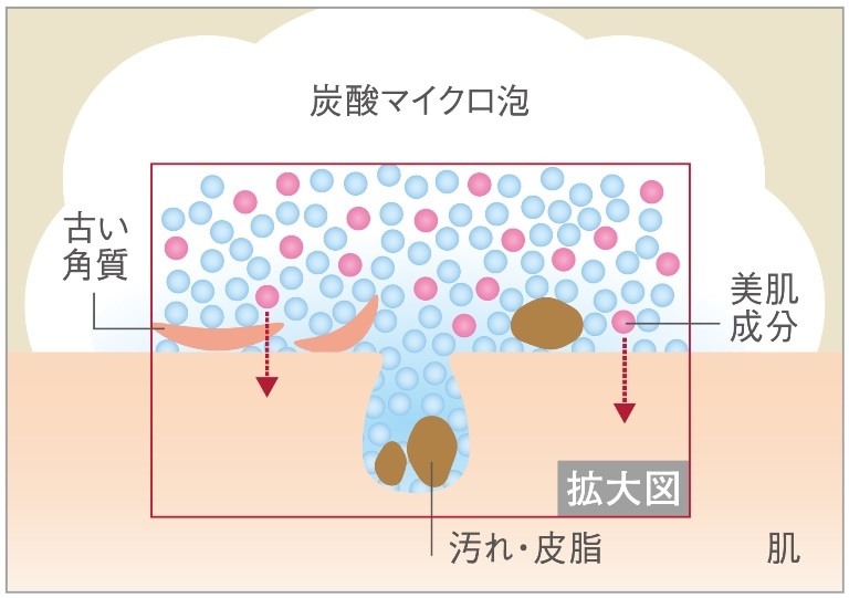 美容効果の高い炭酸入りで、毛穴よりも小さいマイクロサイズ。